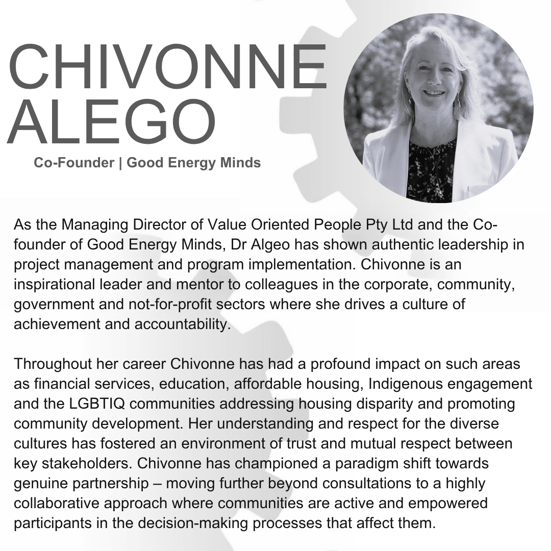 Dr Chivonne Algeo is an inspirational leader and mentor to colleagues in the corporate, community, government and not-for-profit sectors where she drives a culture of achievement and accountability.