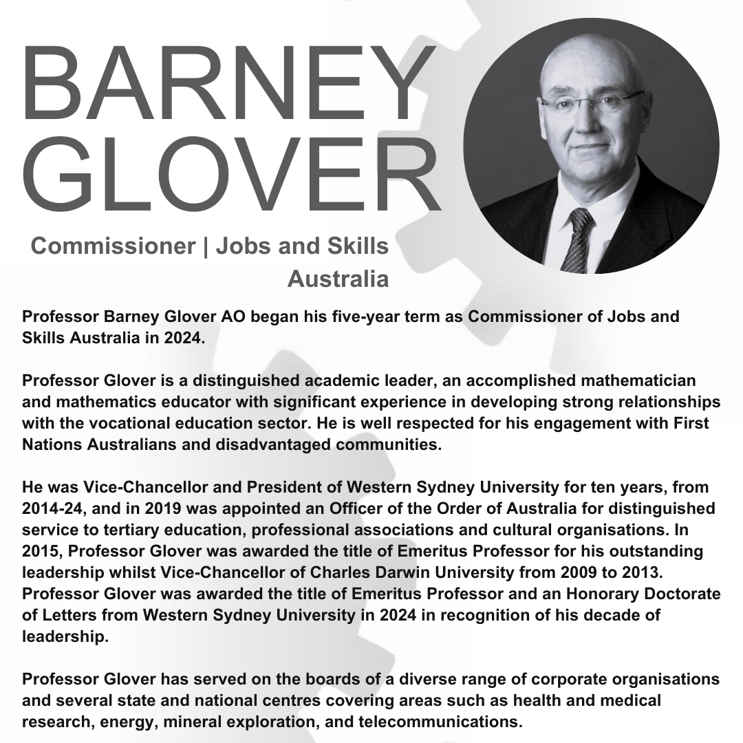 Professor Glover is a distinguished academic leader, an accomplished mathematician and mathematics educator with significant experience in developing strong relationships with the vocational education sector. He is well respected for his engagement with First Nations Australians and disadvantaged communities.