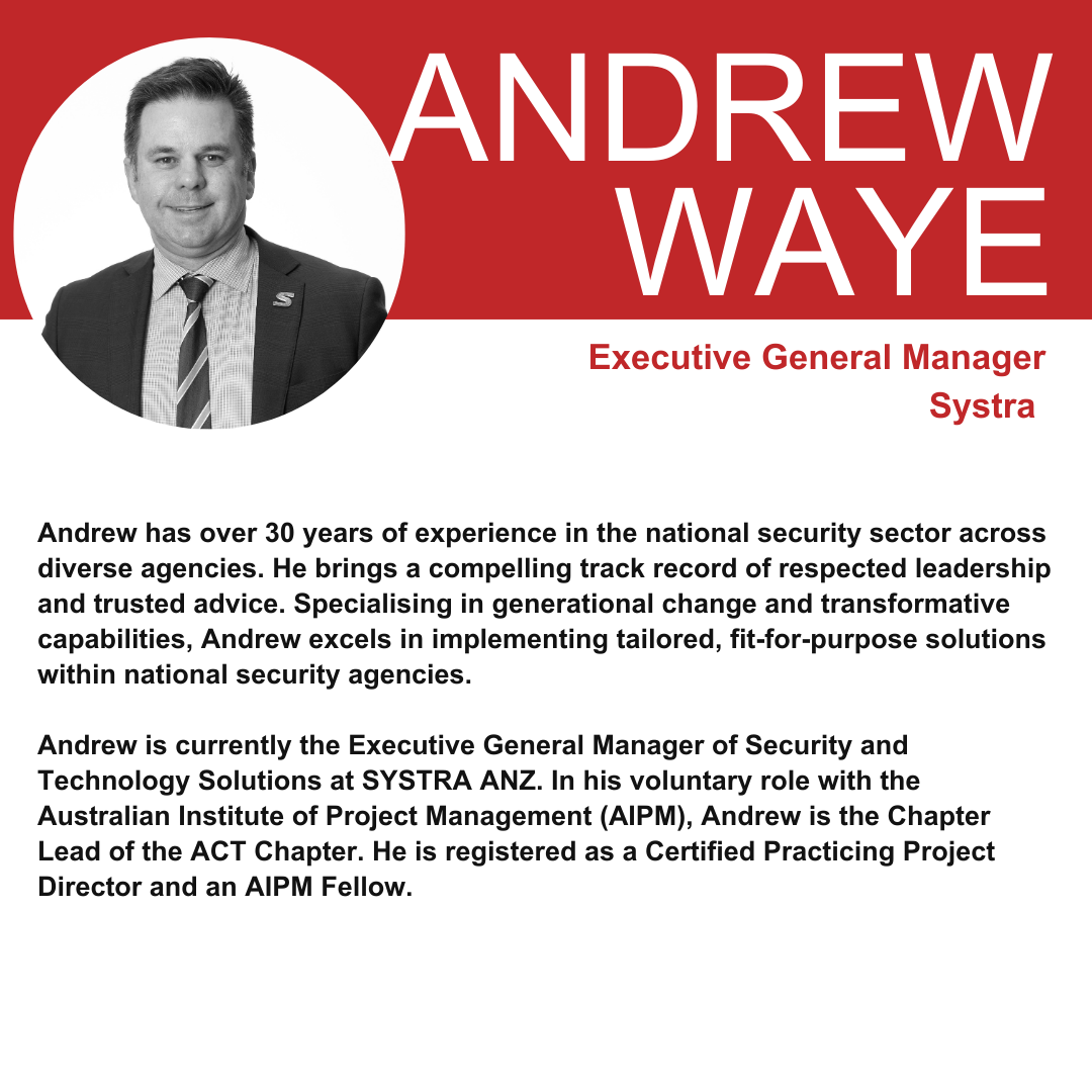 Andrew has over 30 years of experience in the national security sector across diverse agencies. He brings a compelling track record of respected leadership and trusted advice. Specialising in generational change and transformative capabilities, Andrew excels in implementing tailored, fit-for-purpose solutions within national security agencies. Andrew is currently the Executive General Manager of Security and Technology Solutions at SYSTRA ANZ.