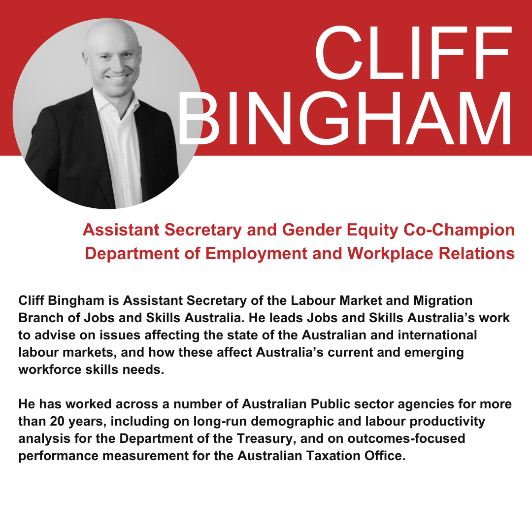Cliff Bingham is Assistant Secretary of the Labour Market and Migration Branch of Jobs and Skills Australia. He leads Jobs and Skills Australia’s work to advise on issues affecting the state of the Australian and international labour markets, and how these affect Australia’s current and emerging workforce skills needs.